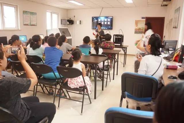 为了让更多的孩子和家庭体验到3D科技与艺术的完美融合,让他们更早地接触到国际前沿的科技知识, 2017年7月24日,西三旗街道办事处在知本时代社区电子阅览室举办了一场“玩转3D打印 乐享科技魅力”---西三旗街道3D打印进社区暑期公益培训体验活动。邀请来自北京开放大学的王老师为同学们授课。