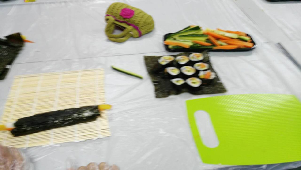 今天我们就为社区居民开展了一次寿司制作活动,请来了老师为大家讲解如何制作好吃的寿司。等到居民都到齐以后老师为大家开始讲解寿司的做法,尤其是想要做好一个寿司,前期的食材选择是至关重要的,每种食材的精心细致挑选才是最后制作寿司成功的关键。制作寿司对大米的要求非常高,首先要选对品种,制作寿司最好的大米是越光米。其次是海苔,用于制作的寿司的海苔与零食海苔略有不同,寿司海苔通常要与寿司帘的尺寸相仿,色泽墨绿而油亮,质地紧密而扎实,中间不能带有透光的空洞,口感香脆并带有一定的韧性。制作寿司用于米饭调味的寿司醋也是必不可少的调味料,寿司醋的调制要以日式的白菊醋作为基底,日式的白菊醋颜色清亮淡黄,酸度适中而略带清香。日式芥末是由山葵(又名辣根)加工而成的,通常有可直接使用的膏状和需要预先调和的粉状两种, 剩余的就是材料,当然根据个人的喜欢不同,所放入的材料也不同,今天我们所带来的材料有,黄瓜、日式腌萝卜、肉松、火腿、鱼子酱。选好材料后,老师开始讲解制作过程,最后大家做完后各自分享自己所做的寿司给别人吃。最后大家展示着自己的成果合影留念。