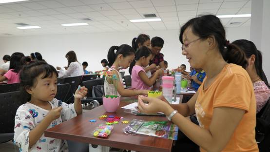 9月6日,在北部图书馆五层活动室,热闹非常。家长们带着自己的孩子,来到图书馆参加“教师节献礼-纽扣花束”制作活动。时值教师节前夕,图书馆特开办此次活动, 旨在营造尊师重教氛围,培养幼儿尊师、爱师、感恩师爱的情感和美德。