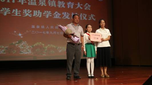 温泉镇党委副书记、镇长张洪雨在会上表示,捐资助学,是一项实实在在惠及学生的善举。本次教育大会,政府发放奖学金共计24.3万元,发放助学金16.1万元,企业向24人捐资助学共计7万元。希望受资助的学生牢记政府、企业和社会各界的关爱,常怀感恩之心,自强不息,勤奋学习,努力成为有用之才,做一个有爱心、有责任感的人。同时,他希望更多的企业家情系教育,心系贫困学子,积极开展助学行动,奉献爱心,回报社会。