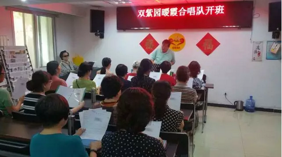 合唱团开班啦:9月8号在八里庄街道双紫园小区30号楼地下活动室里又飘扬起悦耳的琴声、合唱声。暖霞合唱团经过一暑假的休息,今天又开始练声了。耿老师在正式训练之前分发了一大摞歌片,向队员们布置了“新学期”的合唱练习计划。 队员们又回到了这个熟悉的集体,重新投入到新阶段的集体合唱训练中,耿老师又弹起那动听的乐曲带领队员们进行一遍遍发声和呼吸训练。合唱团的活动极大地增强了合唱团的凝聚力,提升了合唱团团员的艺术修养,同时还丰富了大家的业余生活。
