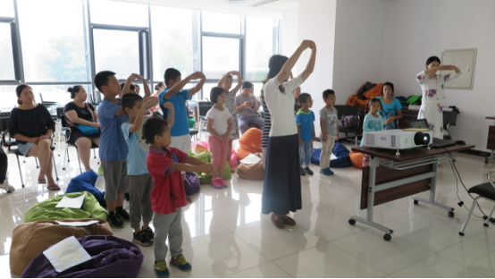 小朋友们随着老师上课,一边学习,一边欢笑,时间过得飞快,转眼间到了下课时间,小朋友们以尊师礼和老师道别,读者们都觉得收获很多,并询问工作人员何时能再有这类课程一起学习。