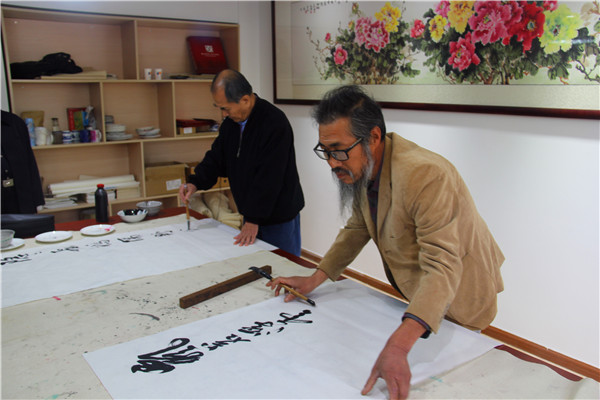 海淀区文联主席苗地、区文委工会主席孙敖度为北京四香书画院新址揭牌。