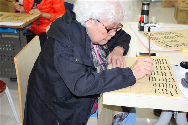 随后,老师对学习所需的工具进行了简单的介绍,讲授了如何开笔、握笔,书法过程中的要点,由最基本的横竖点撇捺开始教起,老师对居民悉心指导耐心示范,居民们目不转睛的听老师讲解,一笔一画反复练习,劲头十足。