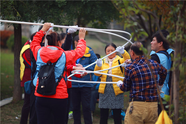 活动需要团队所有人员的紧密配合才能完成每个积分点的挑战任务,从而使得本队获胜。每组队员分工合作,年轻人负责上山找宝箱,体力稍弱的则进行特殊任务。任务有挑战,有趣味,每个团队都群策群力,齐心协力完成任务。各队在完成任务的过程中,互相支持、互相配合,启发智慧,以寓教于乐的形式,温习了十九大精神。在活动终点,每队分别抽取与十九大精神相关题目并进行作答,大家统一意见,全部答对问题并获得宝箱钥匙。