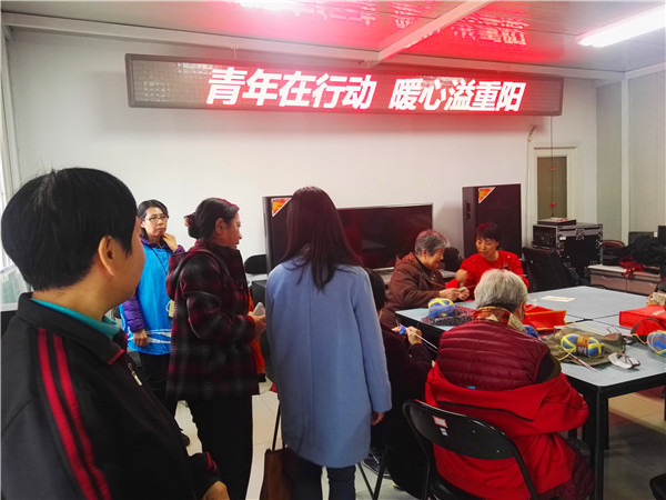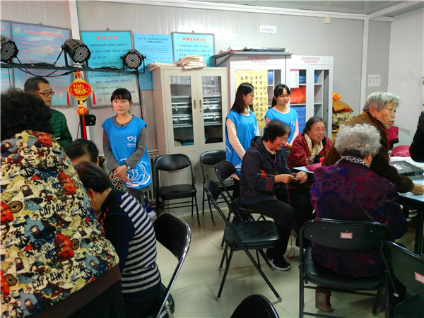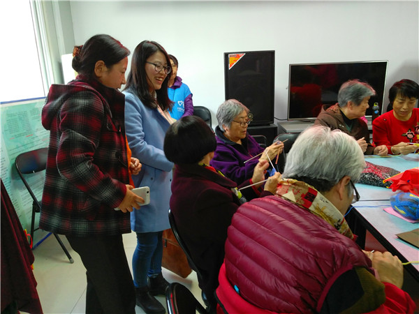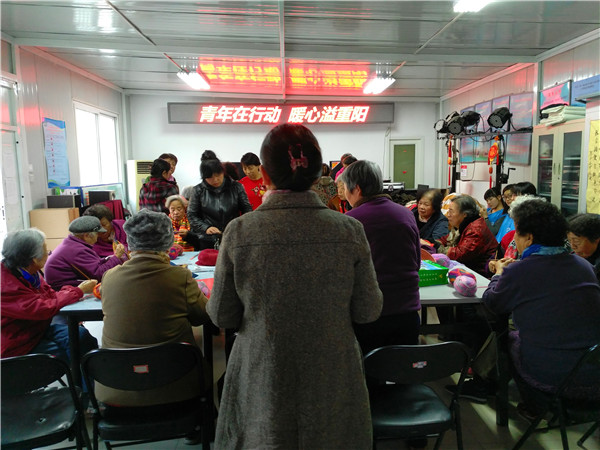 为充分发扬青年志愿精神,践行党的群众性路线,为迎接重阳节的到来,2017年11月1日下午两点在永定路街道一街坊社区活动站里,永定路街道一街坊社区团青志愿者们与社区老人们一起进行编织活动。