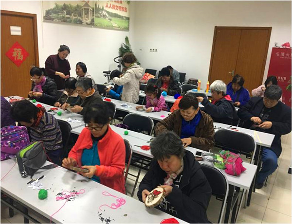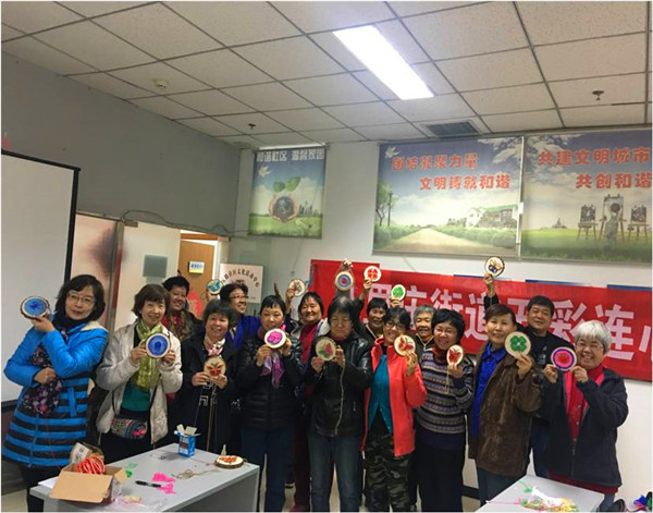居民们边做边交流、老师耐心的进行指导。两个小时后,大家都完成了自己的作品,开心地向工作人员和旁边的伙伴展示手工成果,然后小心翼翼地把作品装好,带回家中做纪念。