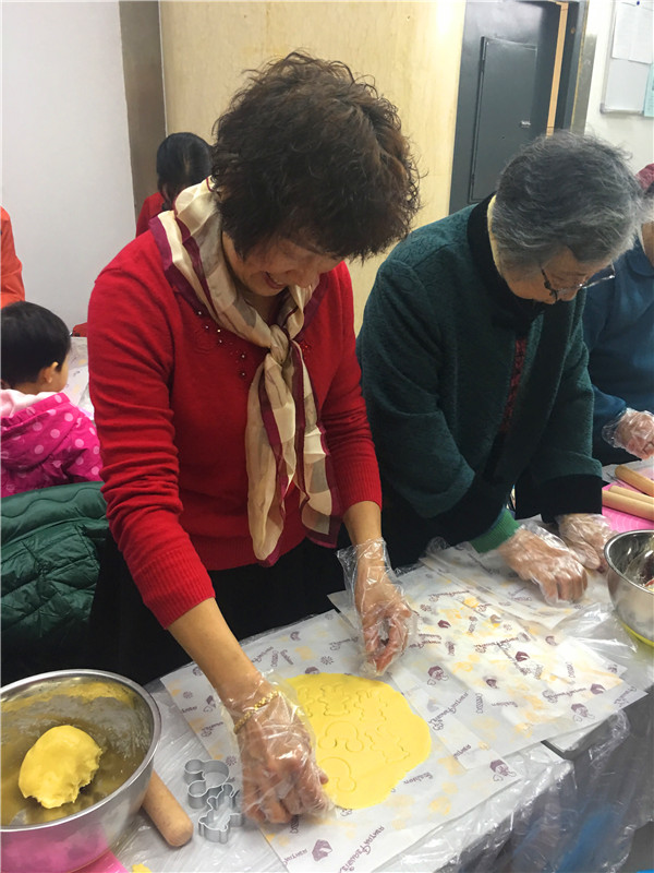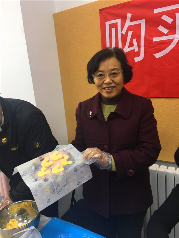 在老师的指导下,大家做得有模有样,最后将定型的饼干放入烤箱烤制。几分钟后,居民们亲手制作的饼干制作成功了,大家兴高采烈的展示自己制作的成品。