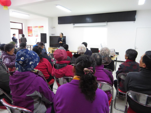 讲座中,王医师用ppt的形式简单清晰地给老年朋友们讲解了高血压的定义、诊断、预防、治疗的相关知识,并提出 “高血压精准治疗”的概念,提出合理膳食、科学锻炼身体、控制体重、戒烟禁酒、保持心理平衡等对控制高血压的重要性,并现场进行答疑及测血压等义诊相关活动。
