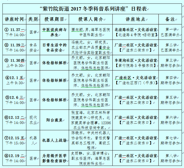紫竹院街道2017冬季科普系列讲座开讲啦!