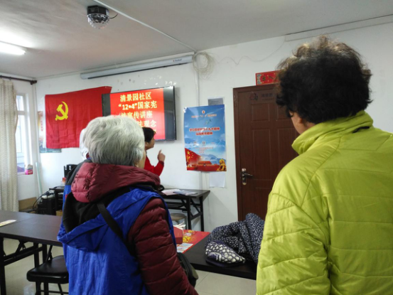 为落实十九大精神,大力宣传以宪法为核心的中国特色社会主义法律体系,弘扬宪法和法治精神,在“12·4”国家宪法日来临之际,清景园社区组织各种形势的宣传活动,如:发放宣传资料、张贴宣传海报、举办宣传讲座等。
