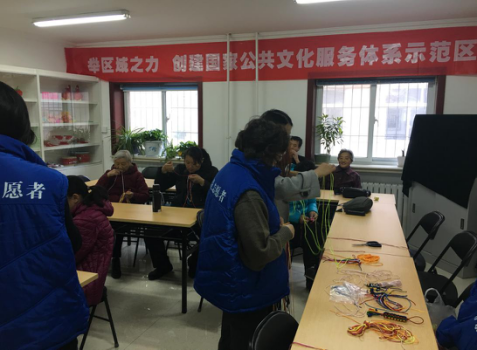 为了丰富社区特殊人群(残障人士)的业余文化生活,锻炼大家的动手能力。我花园村社区于2017年12月13日下午,在甘家口街道社区服务中心活动室组织居民开展了手工编织活动,我们请到了专业老师为大家授课。编织活动计划将进行常态化每周有一次活动,这次活动编织手链,社区居民10多人参加了此次活动。