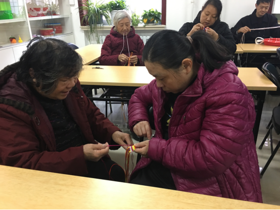 活动开始老师发给居民朋友每人一个固定板,然后将准备好的红线发给大家,老师一步一步耐心的讲解,手把手地教大家,居民朋友们集中精力、认真仔细地听老师讲解,在老师的指导下,居民们认真领会编织的方法,感受其中的奥妙,学习手工编绳。
