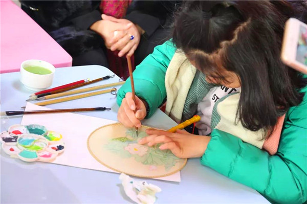 为弘扬民族艺术,传承文化经典,进一步提升四季青镇域家庭的文化修养,1月6日,四季青镇开展水墨团扇绘制体验活动。