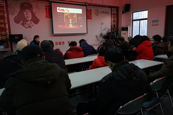 1月10日,学院路街道逸成社区组织集中学习《习近平2018年新年贺词》、新《党章》和海淀区委十二届七中全会工作报告,社区书记张秀清主持学习讨论,社区近50名党员参加学习。