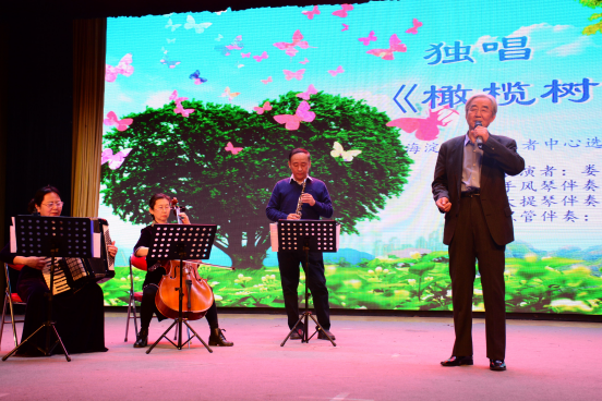 整场演出都是文化志愿者们精心准备的,形式多样,内容丰富,既有京剧票友们非常喜欢的京剧《红灯记》选段《做人要做这样的人》以及《沙家浜》选段《智斗》,也有武术表演,独唱《我们这一辈子》、《梨花颂》、《橄榄树》等经典歌曲,还有琵琶独奏《十面埋伏》,舞蹈《洪湖情》等等精彩纷呈的节目,多才多艺的文化志愿者们为在场所有人献上了一场精彩绝伦的视听盛宴。最后,演出在深情而优美的合唱《歌唱祖国》中圆满落幕。