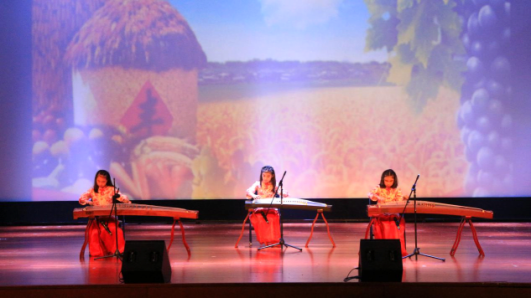 一曲欢快的舞蹈《炫镜》拉开了演出的帷幕。随后,艺术团的小演员们带来的中英文合唱《挥着翅膀的女孩》、快板《报菜名》、古筝齐奏《丰收锣鼓》、独舞《俏花旦》、朗诵《虫儿飞》、小品《王者荣耀》等精彩节目接连上演,小朋友们专注的神情和纯真的笑脸感染了在场的每一位观众,不时报以热烈的掌声。