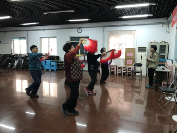 悦耳悠扬的音乐,曼妙的舞姿。每天午后,一群中老年妇女会准时出现在我们三明里社区居委会活动室里,手摇大红色舞扇,踩着音乐节拍跳起健身秧歌来。2017年底,我们社区居委会干部们积极开展了 “学跳健身秧歌活动增强市民身体素质”的活动,发动居民们运动健身,丰富社区的文娱生活,组织了一支社区健身秧歌队。居委会的干部们积极为她们寻找老师和场地,又提供了音乐设备大家方便学习。但阿姨们克服了各种困难都坚持了下来,凭着这股韧劲和热情,在大家的共同努力下,这只健身秧歌队伍的规模也在壮大,表演也越来越精彩。有的居委会成员和爱好文艺的居民也来一起学习。这项活动既丰富了我们社区的文化娱乐活动,又增进了居民之间的交流沟通,深受广大居民朋友的欢迎。通过秧歌学习,老人们不仅锻炼了身体,放松了身心,而且加强了邻里之间的交流了解,营造了温馨和谐的社区生活氛围。