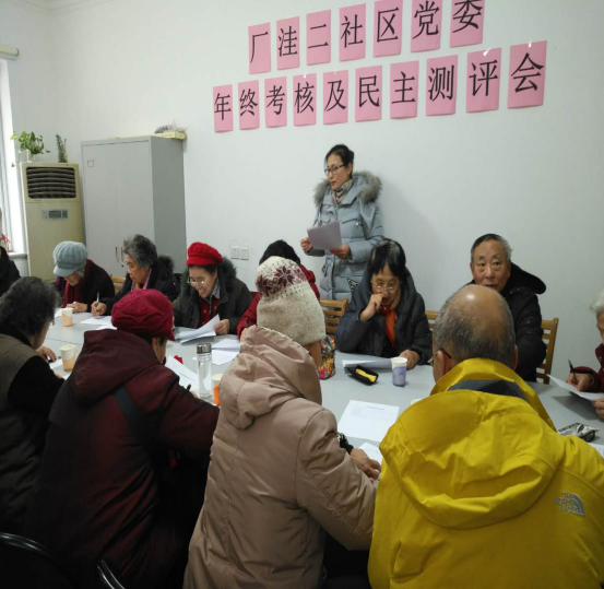 深入贯彻党的十九大精神,2018年1月17日上午,紫竹院街道组织部副部长赵晓芬及秦明玉同志到厂洼二社区对社区党委开展了年终考核及民主测评。民主测评邀请了社区16名党员代表参加。参加测评的社区党员本着公平、公开、公正的原则,对社区党组织做出了客观评议。