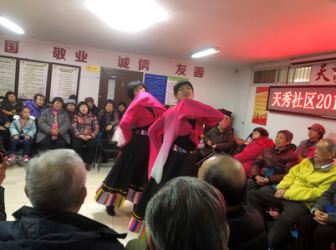 在新春佳节到来之际,为让社区居民度过一个欢乐、喜庆的节日,搭建新老居民间相互交流沟通平台,不断增强社区的凝聚力、向心力。2018年1月19日下午2:30,天秀社区举办“喜庆十九大 共创新时代”迎新年居民联欢会,社区居民们欢聚一堂,共迎新年的到来。