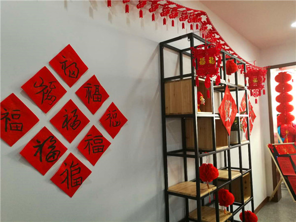 书法区,居民们拿起毛笔,泼墨挥毫,一幅幅春联瞬间呈现;还有家长鼓励孩子自己试着写一写,表示:虽然孩子写出的作品并不完美,但过年时贴上自己写的春联,那感觉更喜庆!