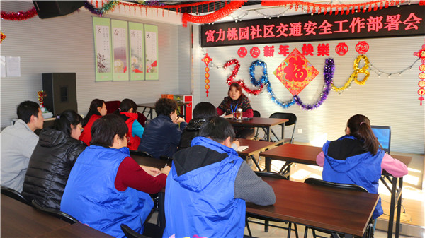 随即,富力桃园社区在2月5日下午召开了节前交通安全工作部署会。会上,社区党总支书记、居委会主任张美珍传达了西三旗街道交通委关于“春节”“两会”期间交通安全精神,并强调:要根据辖区内实际情况,高度重视道路交通安全,做好安全工作排查,以“秩序好、事故少、道路畅通、群众满意”为工作目标,确保交通安全工作万无一失。