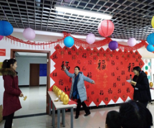 第二组蒙眼贴五官的游戏也是让现场笑声不断,贴出的人像面孔有的“面目狰狞”,有的“眉飞色舞”。答题砸金蛋的环节大家的热情也非常高涨,现场又是欢声笑语,又是金花四溅。