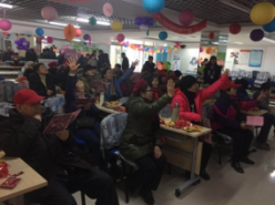 2018年2月6日,晴雪园社区居委会为社区居民们举办了一场热闹的小年儿联欢喜乐会。为了准备这场活动,晴雪园社区的世纪书画院的老师们提前利用自己的空闲时间写出“百福图”,做为舞台背景。到场的居民纷纷与“百福图”合影,活动尚未开始,就已经引得现场热闹非凡,年味儿十足。