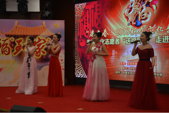 此次演出,是海淀区第九届“海之春”系列活动之一,也是海淀区文化志愿者们2018年“送福到家”文艺慰问演出的第三场。在戊戌年春节到来之际,海淀文化志愿者们深入街道、社区、企业,开展文艺慰问演出,送祝福到基层,送文化进万家,目的是让每颗创新的种子在海淀都能得到阳光的普照、春风的沐浴,都能茁壮成长,承担起建设中关村、建设海淀的重任。