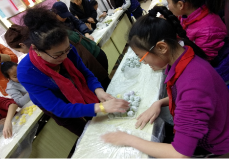 下午四点正是孩子们放学的时间,社区里很多青少年学生下学后由家长带领直接到现场参加成为现场的一个最热闹的景象,孩子们叽叽喳喳欢歌笑语,掩饰不住他们内心的激动和兴奋,猜灯谜的居民互相交流,为猜到正确答案的居民鼓掌,包汤圆的居民揉面的揉面,拌馅的拌馅,随着一双双巧手的搓转,一个个白白胖胖的汤圆很快就摆满了桌面。