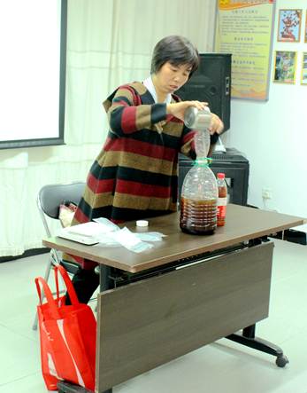活动中,环保志愿者马老师现场宣传环保理念,介绍什么是酵素。在此次活动之前很多人都认为酵素只是一种食品,通过老师的讲解,让居民们了解到酵素的特性、用途和制作方法。