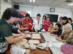 2018年8月28日上午,有30名社区居民积极参加了此次烹饪课,本次课程的培训内容是老北京传统小吃驴打滚和艾窝窝的制作。烹饪老师采用现场实际操作与理论知识学习相结合的方式,就面点食材的选择、烹饪时间、制作手法等必备技巧及配料的合理搭配等做了详细的介绍。大家围在操作台前,一边听着老师的讲解,纷纷参加制作过程,课堂气氛其乐融融。还不时提出一些日常制作面点遇到的问题,与老师相互讨论制作的小窍门,整个课堂充满了浓厚的学习气氛。经过大家的一起制作,社区居民们在品尝了驴打滚和艾窝窝之后,纷纷称赞味道佳、颜值高!