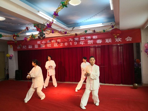 联欢会开始前,社区党支部书记、居委会主任张旭同志代表世纪新景园社区为居民们送上了最诚挚的新春问候。随后,伴随着世纪舞苑舞蹈队的维族舞《欢乐》联欢会正式拉开帷幕。公安部合唱队的歌曲《不朽的黄河》、《祖国不会忘记你》,太极队的陈氏十八式太极拳,杨氏三十二式的真功夫表演,体现了社区老干部们宝刀未老的精神面貌,赢得了观众们的喝彩。伴随着歌曲《繁花》的悠扬歌声,书画班的老师们为大家现场写春联,作画,联欢会的氛围溢出了浓浓的年味。在联欢会上,世纪金源物业表演了《正义之道》,全体居委会干部朗诵了诗歌《歌颂党》,盛基藏族艺术学校的孩子们表演了《唱支山歌给党听》,中信银行的节目吉他弹唱《春风十里》。另外,穿插在节目中的一年一度的抽奖环节,大家的欢呼声最为高亢,把联欢会的欢快气氛推向了高潮。