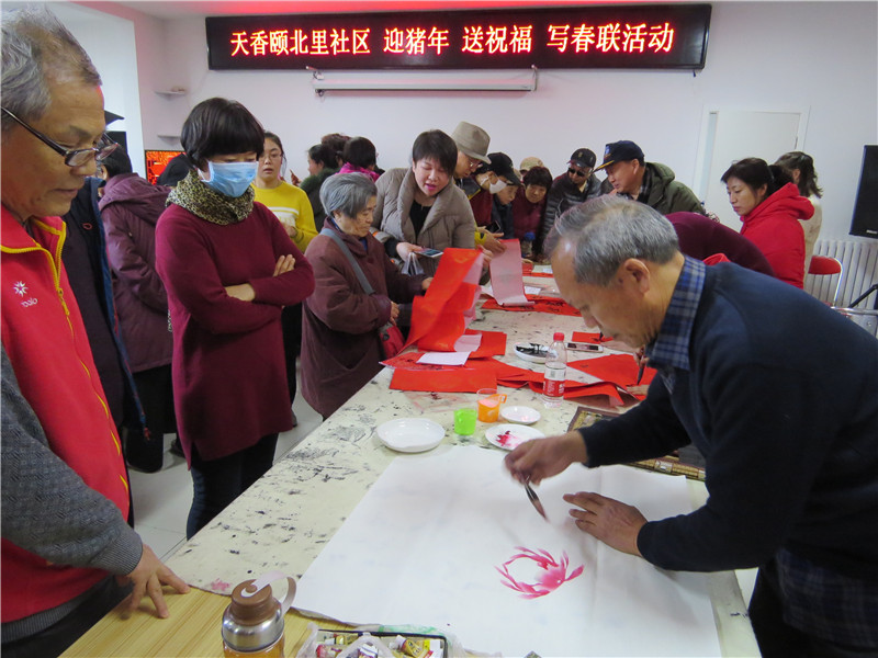 天香颐北里社区举办“迎猪年 送祝福 写春联”活动