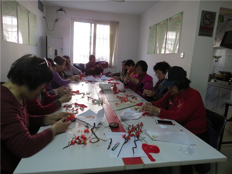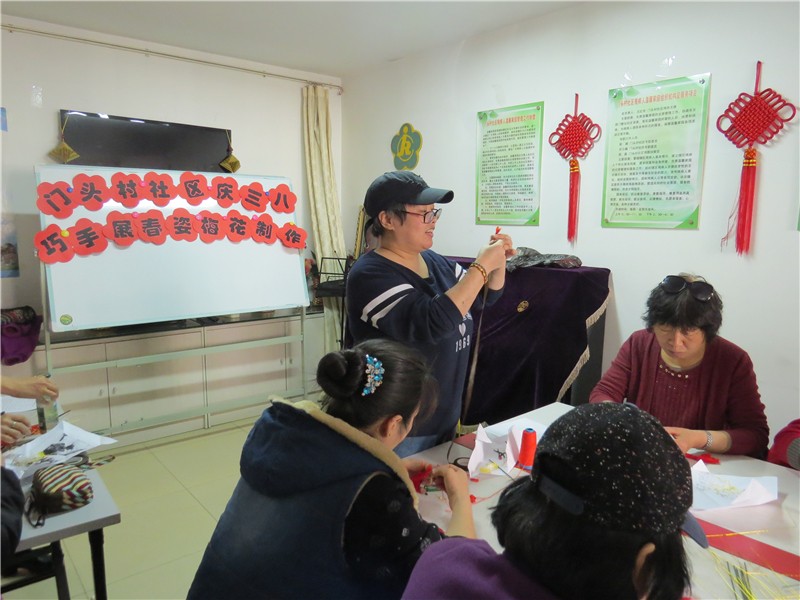 为庆祝第109个三八国际妇女节的到来,3月6日下午,头村社区开展庆三八巧手展春姿丝网花--梅花制作活动。