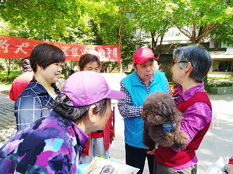 一年一度的犬只集中年检、免疫工作开始了,为了向广大居民宣传依法、文明、科学养犬相关知识,5月6日上午诚品建筑社区居委会工作人员在园区内开展文明养犬宣传活动。