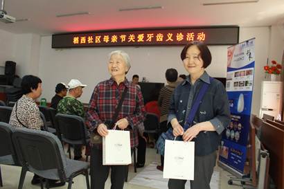每一位前来就诊的母亲都得到了有稻西社区居委会和圣贝口腔医院共同赠送的母亲节礼物,领到礼物的母亲高兴的说:“手中的礼物只是小事,更重要的是因此学到了养成健康生活的习惯,这才是最棒的母亲节礼物。”