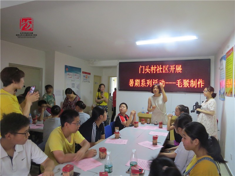 为培养社区青少年勤动手、勤动脑的能力,7月26日上午,门头村社区开展“传承民族文化毛猴制作”活动。此次活动共有20名青少年参加活动。活动邀请了第四代毛猴非遗传承人杨雪霞老师授课,杨老师毛猴作品《水底捞月》在“首届三苏祖籍文化节”活动中获得《传承》金奖。