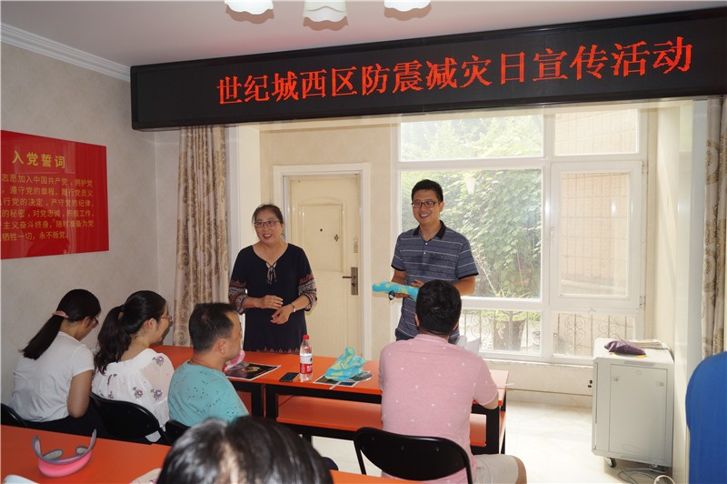 今年7月28日是唐山大地震43周年,为了提高居民对防震减灾工作的关注,增强居民防灾减灾意识,并做好今年的防灾减灾各项工作,按照上级的统一部署,2019年7月27日世纪城西区社区开展了以“防灾减灾人人参与,和谐社会家家受益”宣传讲座和演练活动。