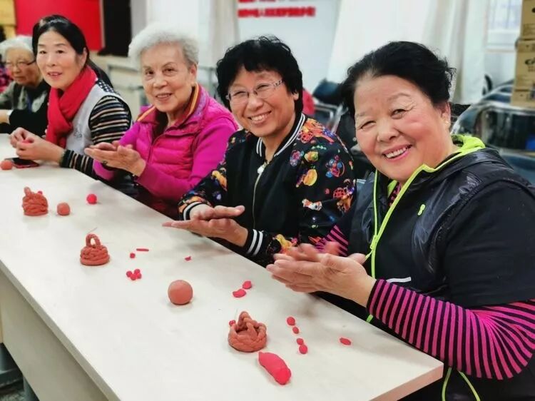 原来这是体大颐清园社区新时代文明实践站开展非物质文化遗产体验活动——捏面人,色彩鲜艳的轻黏土在居民手里捏、揉、搓,彩色的面团顿时有了生命力。