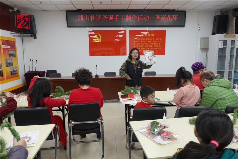 12月21日下午,西山社区组织辖区未成年人开展圣诞节系列手工制作活动,带领小朋友们动手制作圣诞花环。此次圣诞手工制作活动邀请了盈慕会议服务公司的老师,带领小朋友体验手工的乐趣。