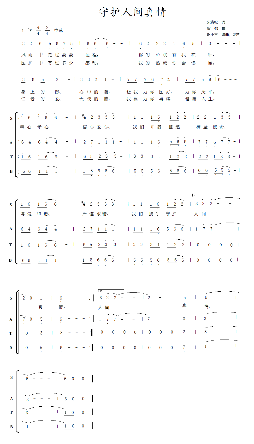 《守护人间真情》是海淀北部文化馆应驻区老年医院委托,特邀宋青松作词、智强作曲的一首赞颂白衣天使仁爱、奉献的合唱作品,由北京节日合唱团演唱。在共度时艰的时候,让我们以此歌曲献给我们的健康守护者们,激励全国人民万众一心、凝心聚力迎战疫情!