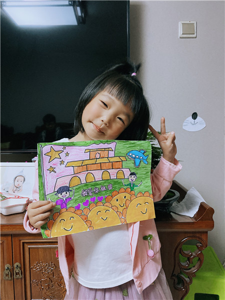 活动中,小朋友在通过自己的努力,绘画出一幅幅精美绝伦的画作,表达了对祖国的热爱。