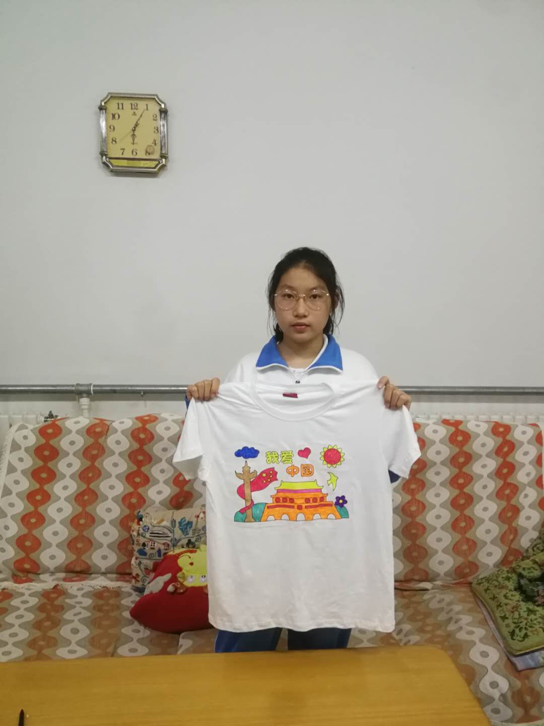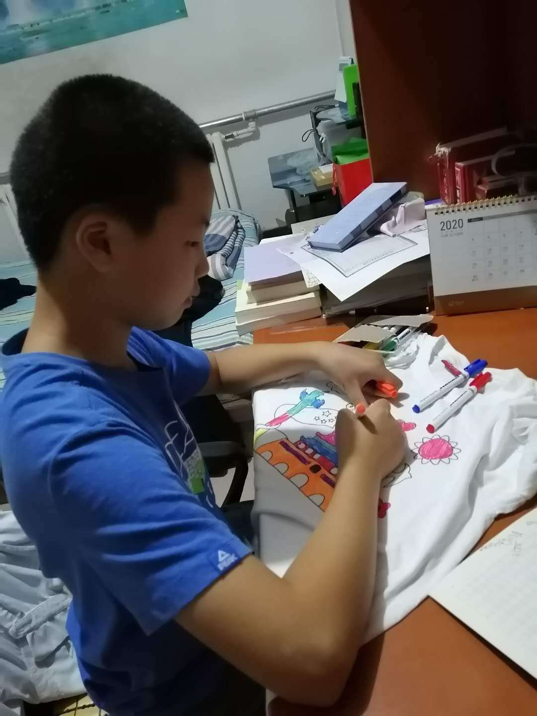 首先,主持人在群内讲解了彩绘T恤的绘制方法。接下来,孩子们自己动起手来绘制T恤。小朋友们认真的制作着专属于自己的“艺术品”,不一会儿,T恤上再没有一丝空白,一座座颜色各异的天安门城楼跃然呈现,蕴藏着孩子们对祖国妈妈最稚嫩、最真诚的祝福。孩子们的想象是那么的精彩和无尽,在斑斓的色彩中淋漓尽现。