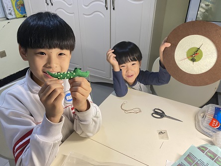上庄镇皂甲屯村线上亲子“制作小挂钟”手工活动