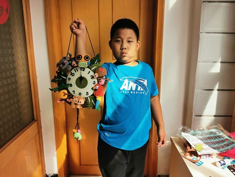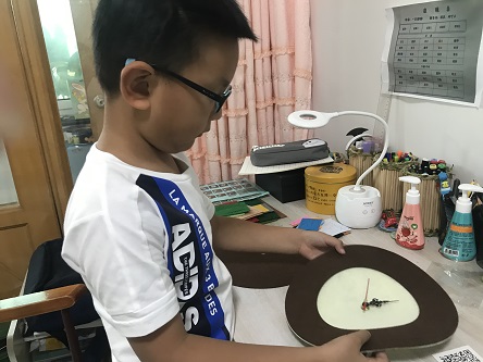 为了保证此次活动的顺利开展,我们把提前准备好的手工小挂钟的制作材料发放给小学生。活动开始后,孩子们在父母的帮助下,对照图片,比对位置,调整时间,组装,一个个认真严肃,俨然像一个个小科学家,有几个小朋友在制作过程中遇到了点疑问,主动微信老师指导解答,在小朋友和家长在的努力下,一个个造型可爱的小挂钟伴随着他们的笑脸出现在大家眼前,家长们把做好的挂钟纷纷上传到微信群里,孩子们相互展示,互相分享着喜悦,大家十分开心,小朋友们 看到自己的劳动成果更是乐开了花。