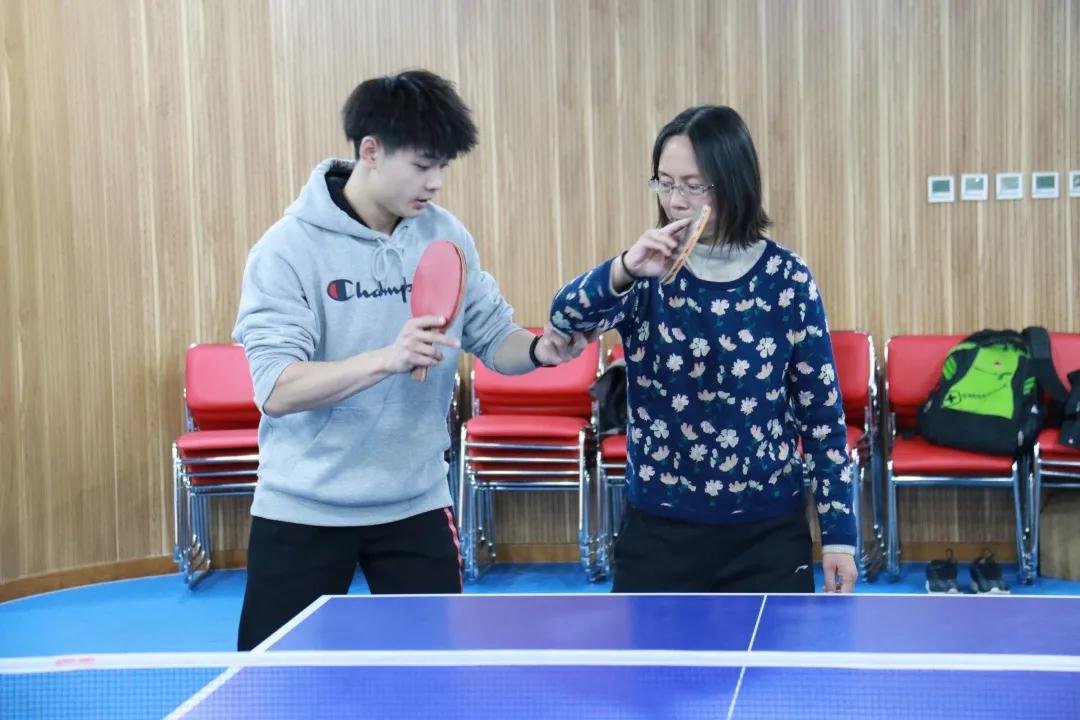 课上,郑老师详细讲解了如何握拍、挥拍、正手下旋球、反手搓球、正手拉下旋弧圈球等技术动作,并强调了这些动作的要领及注意事项。